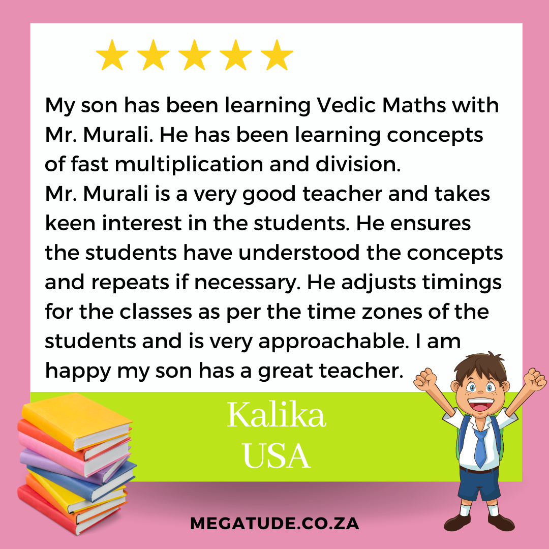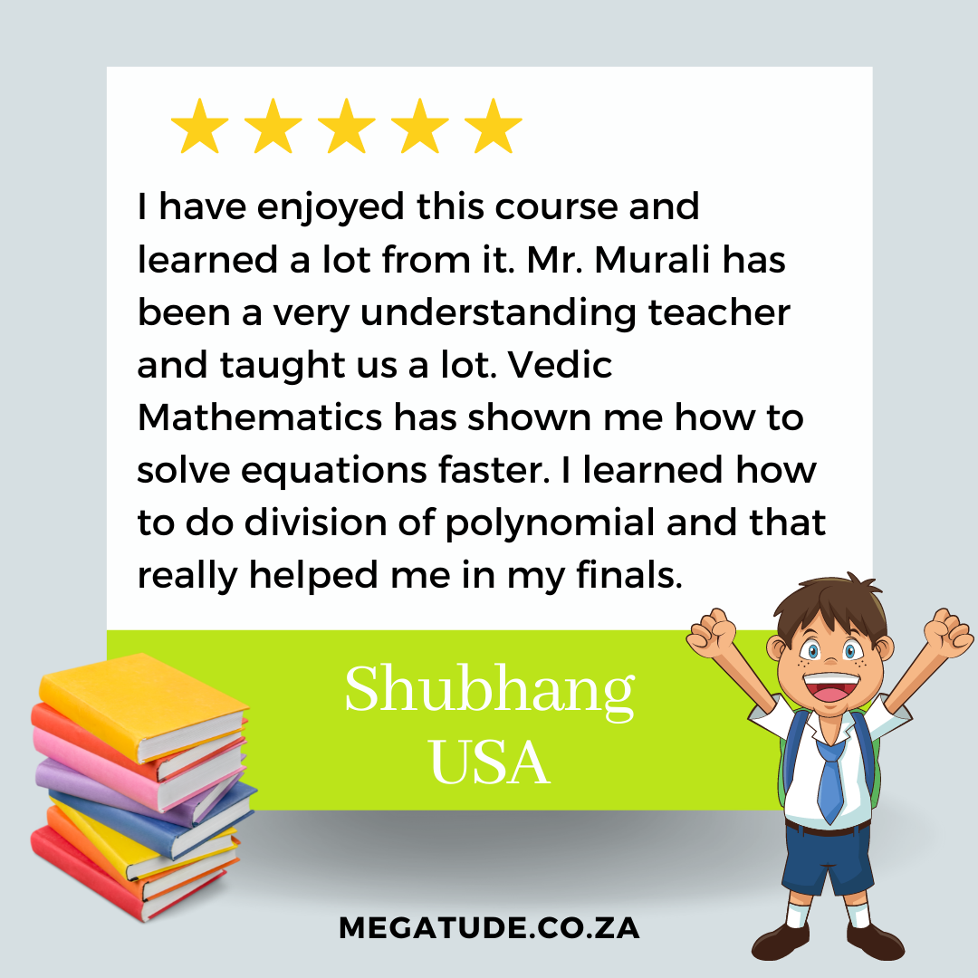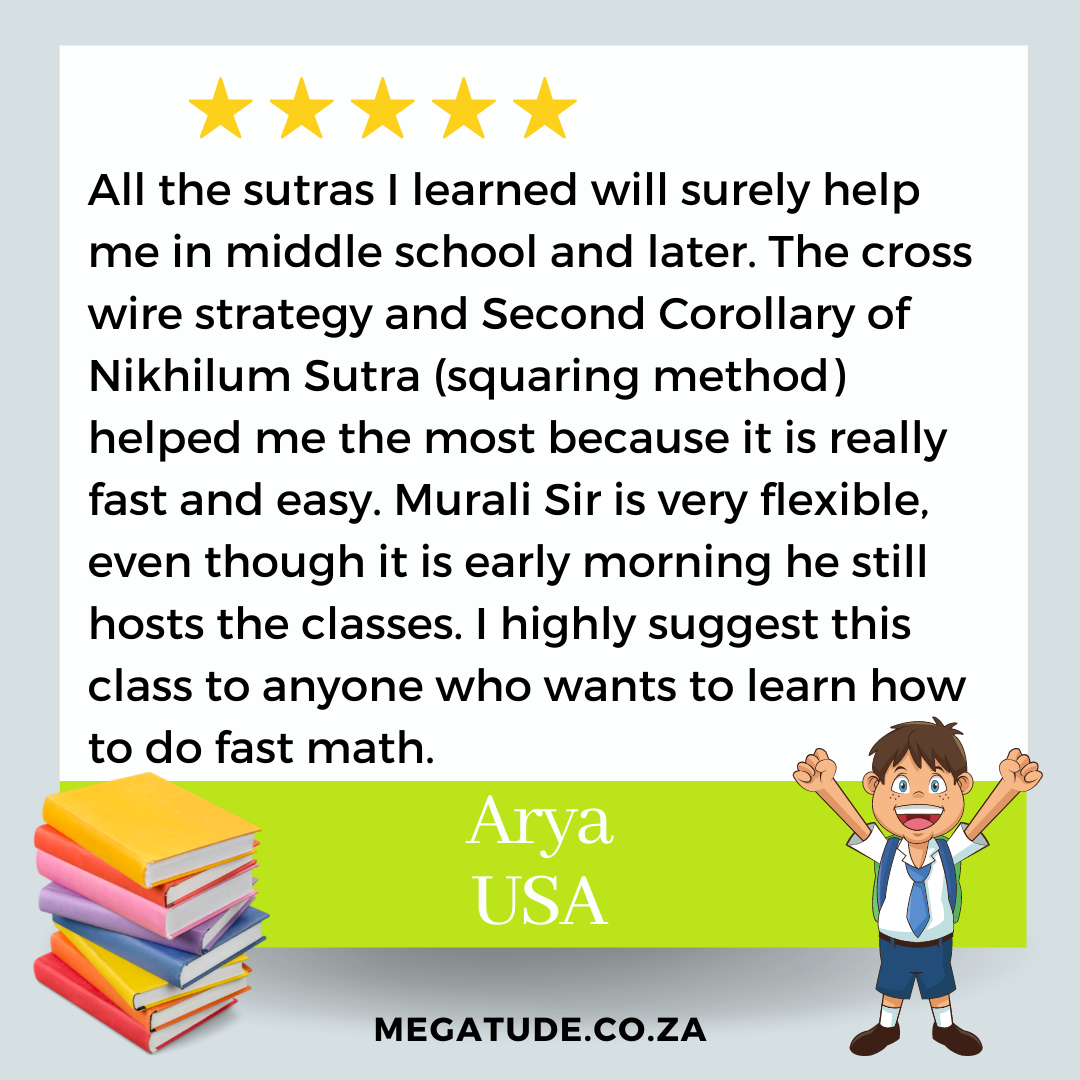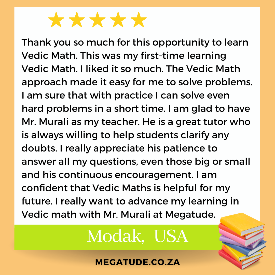 The course engages participants in simple Vedic Math techniques that can promote fast and accurate learning; improve memory and concentration; innovative thinking and can stimulate problem solving and critical thinking skills.
